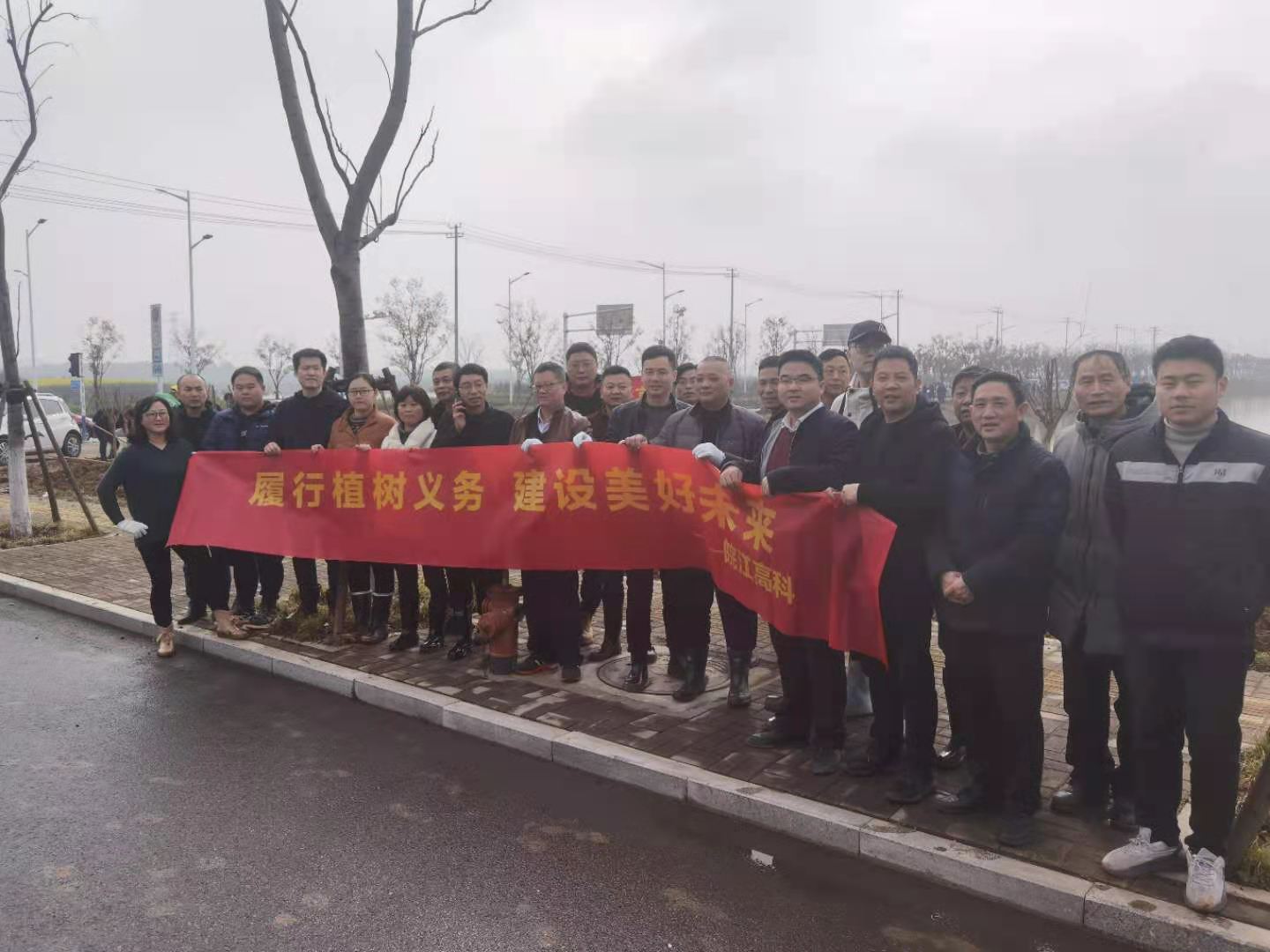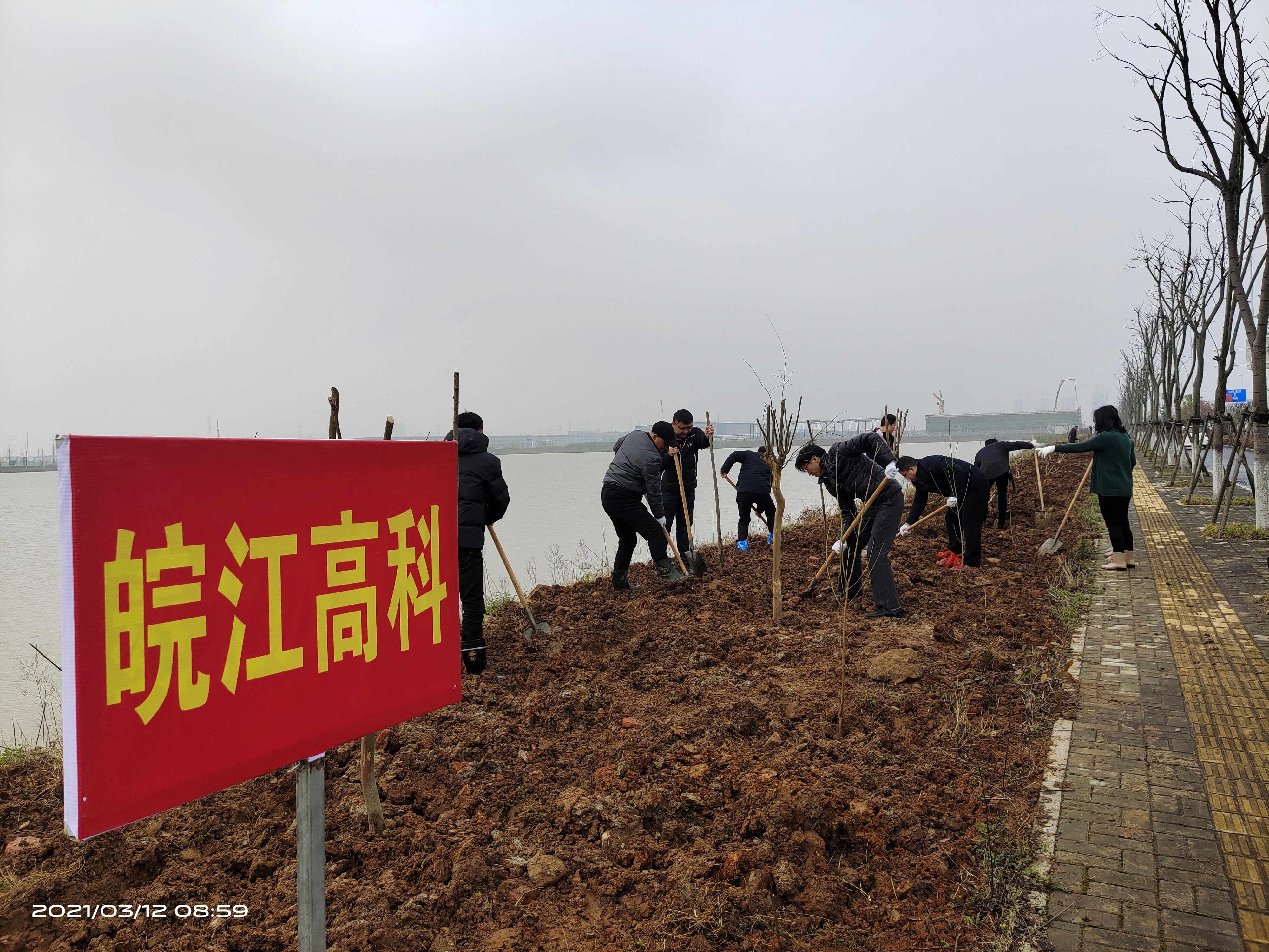 植樹過程中,大家個(gè)個(gè)熱情高漲、干勁十足,三五人一組,分工合作,配合默契,有的挖坑、有的扶樹、有的培土,每道工序有條不紊,到處一片熱火朝天的勞動(dòng)場景。眾人拾柴火焰高,經(jīng)過大家一上午的奮戰(zhàn),新栽種的綠化苗木在白水湖岸旁構(gòu)成一道靚麗風(fēng)景線。最后,大家集體合影留念,組員們手中高舉勞動(dòng)工具,歡呼雀躍。